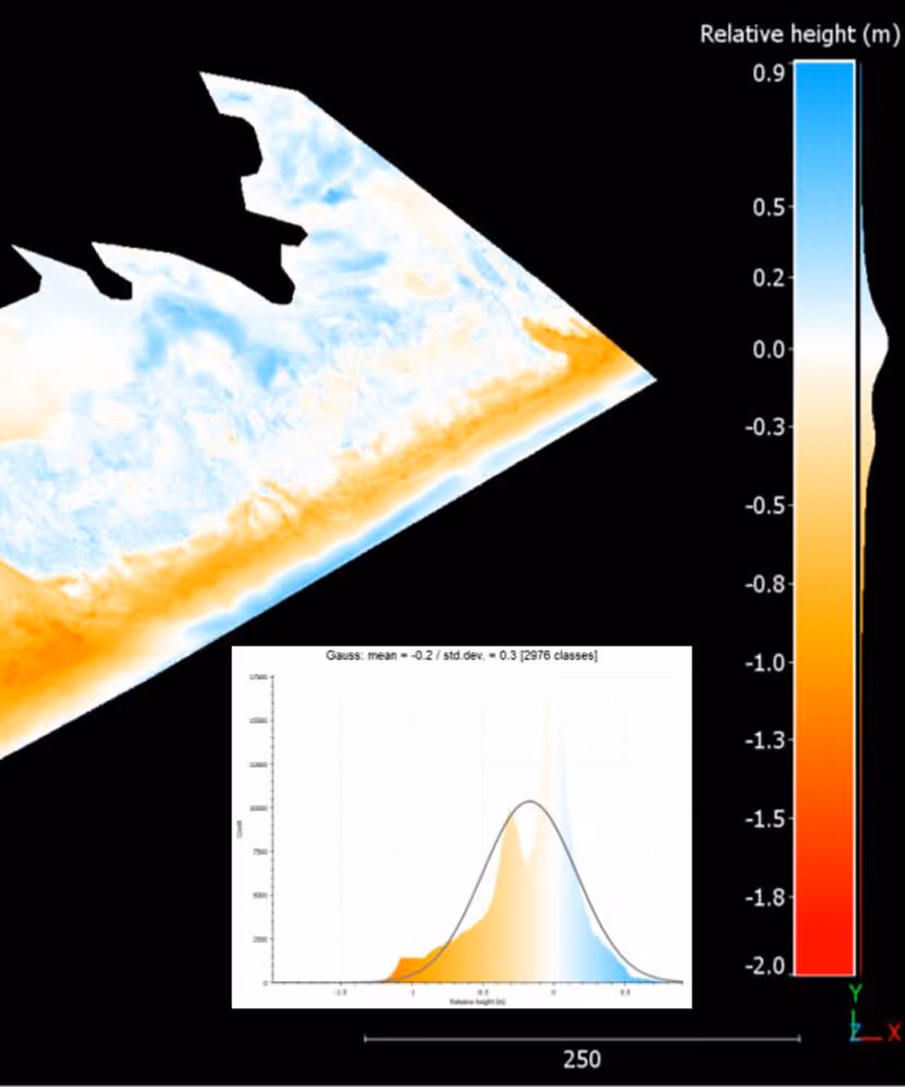 - Phase 2 focused on analysis, including cleaning and aligning drone-based data with pre-storm LiDAR, generating DEMs at multiple resolutions, and conducting volumetric calculations.